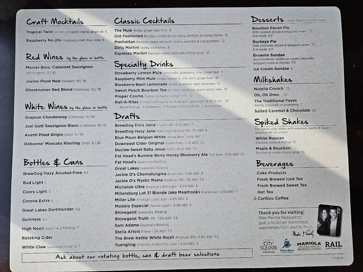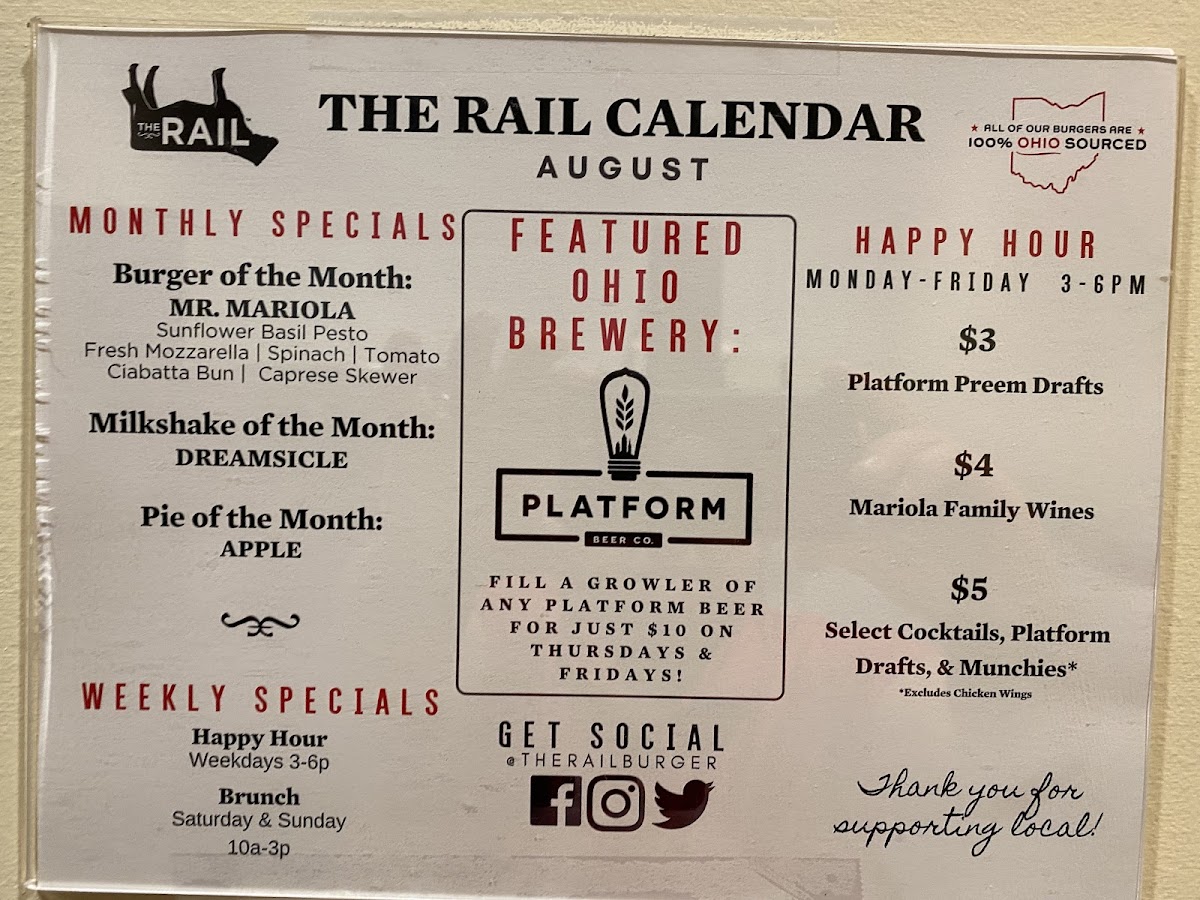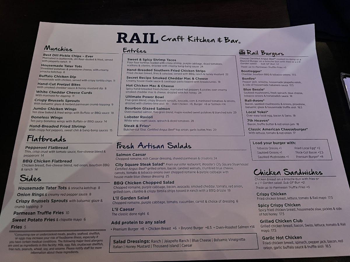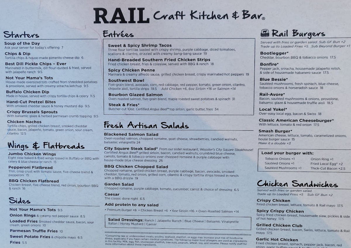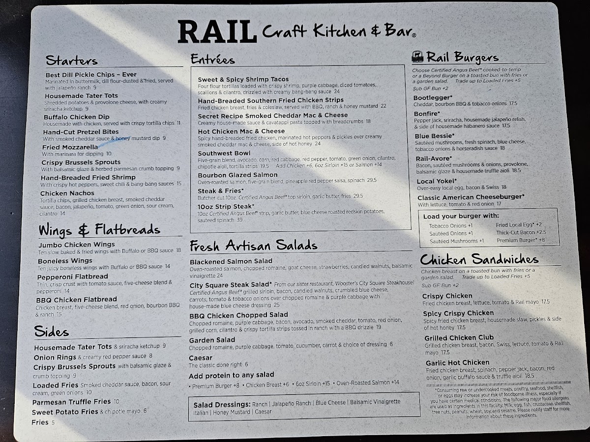 Rail Craft Kitchen & Bar - Dublin Menu